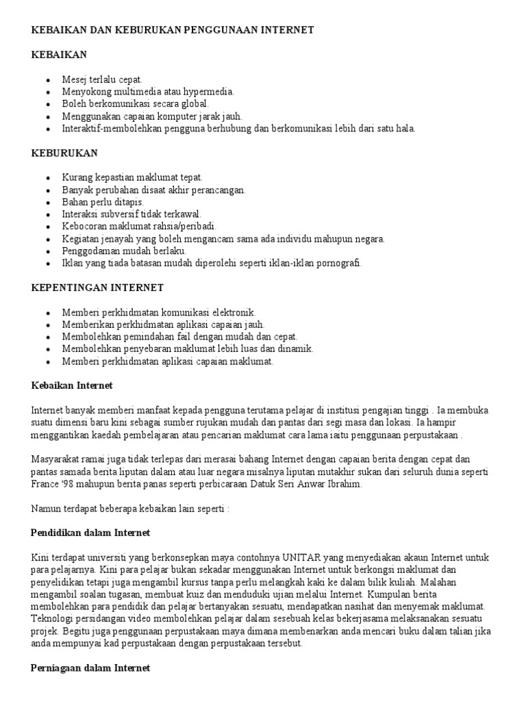 Kebaikan Dan Keburukan Penggunaan Internet Pdf